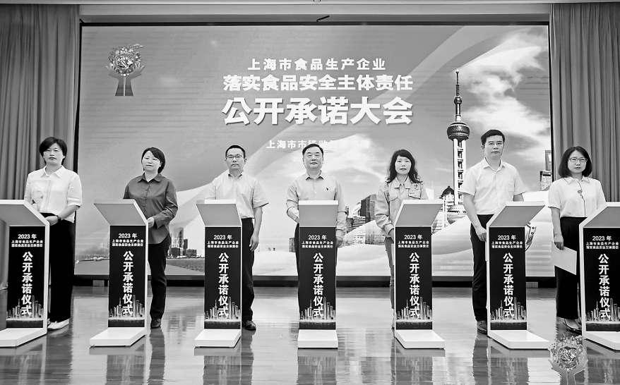6月28日,上海市市場監(jiān)管局舉行食品生產(chǎn)企業(yè)食品安全主體責任公開承諾活動,多家食品生產(chǎn)企業(yè)代表現(xiàn)場簽訂承諾書,公開承諾嚴格履行食品安全主體責任,違者最重將面臨停產(chǎn)停業(yè)處罰。
