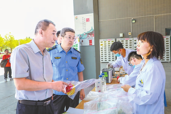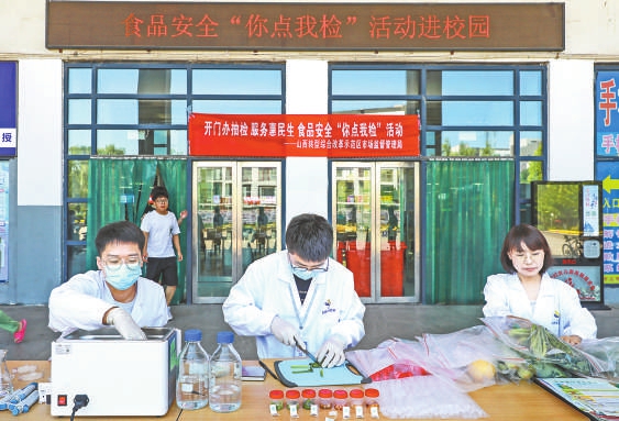 “您好,我們可以自己選擇檢測食品嗎?”6月21日,在太原學(xué)院餐廳門前,很多大學(xué)生圍在山西綜改區(qū)市場監(jiān)管局設(shè)立的“你點我檢”桌前向工作人員提問。該局食品監(jiān)管科副科長吳煒耐心給學(xué)生們講解:“沒問題,咱們掃碼后可以根據(jù)需求選擇,我們會根據(jù)大家的選擇進(jìn)行相關(guān)檢測?!睅孜粚W(xué)生在吳煒的引導(dǎo)下進(jìn)行了操作,同時觀看了食品安全快檢流程?!拔覀兊牟妥谰涂磕銈儽O(jiān)督,必須給你們點贊!”幾位同學(xué)對市場監(jiān)管部門的工作表示贊揚(yáng)。