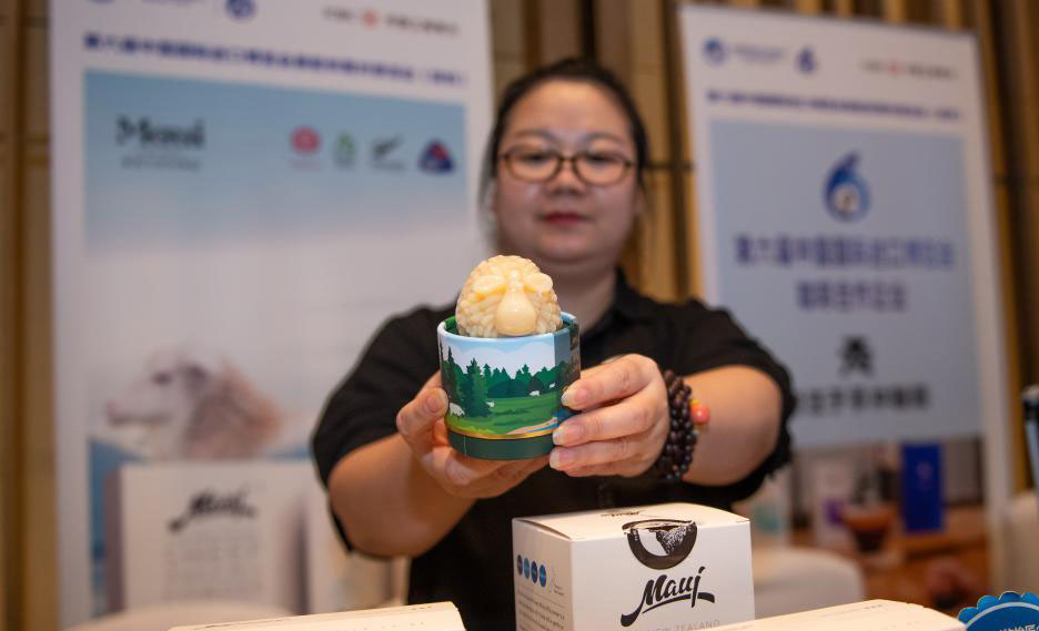 8月29日,在廣東省深圳市舉行的進(jìn)博會展前供需對接活動上,參展商(左)向采購商介紹進(jìn)口藍(lán)莓。