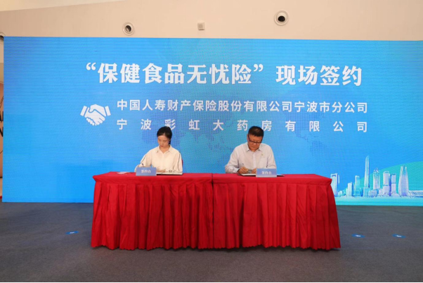 在食責(zé)險“寧波模式”提質(zhì)專場,發(fā)布“保健食品無憂險”,這也是該保險的全國首發(fā)。寧波彩虹大藥房有限公司與寧波市食品安全責(zé)任保險共保體承保人中國人壽財產(chǎn)保險股份有限公司寧波市分公司簽訂首份投保協(xié)議。