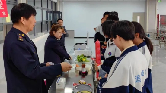 活動(dòng)現(xiàn)場(chǎng),尚義縣市場(chǎng)監(jiān)督管理局工作人員設(shè)立快速檢測(cè)服務(wù)臺(tái),演示“你點(diǎn)我檢,你送我檢”快檢方式,現(xiàn)場(chǎng)按照食品安全監(jiān)督抽檢程序要求,對(duì)食堂的蔬菜、肉類、調(diào)料等開(kāi)展快檢。