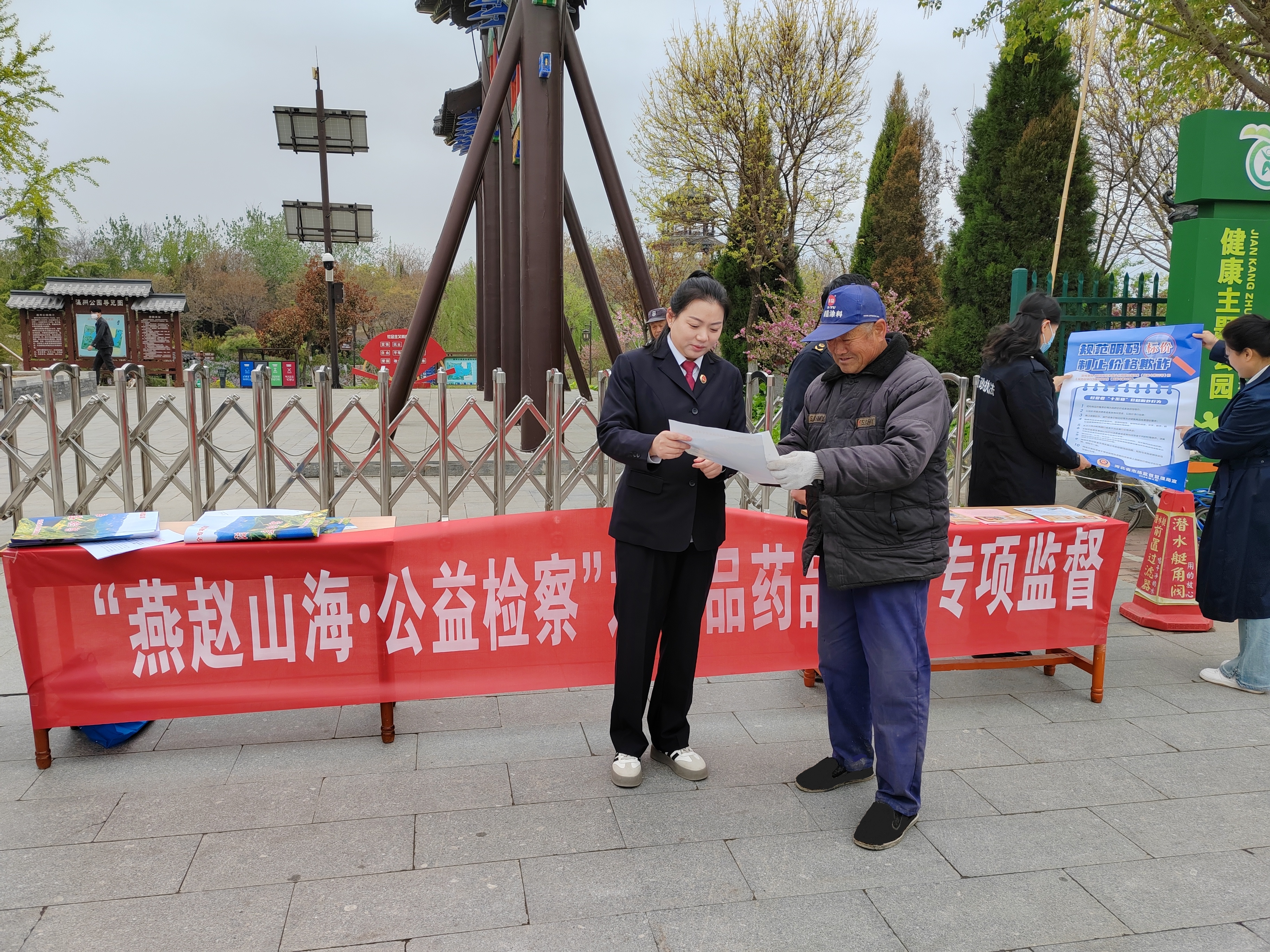 為積極開展“公益訴訟走基層、百鎮(zhèn)千村萬戶行”專項(xiàng)工作,4月9日,河北省滄州市河間市人民檢察院聯(lián)合河間市市場監(jiān)督管理局到瀛州公園廣場開展“燕趙山海·公益檢察”之食品藥品安全專項(xiàng)監(jiān)督宣傳活動。