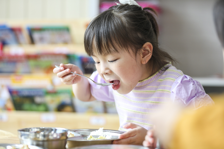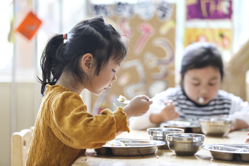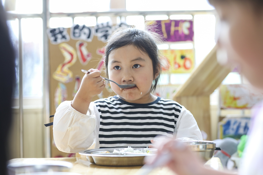 5月22日,江西省撫州市南豐縣市山鎮(zhèn)第一幼兒園的小朋友在吃午餐。近年來,南豐縣推行農(nóng)村學(xué)前教育兒童營養(yǎng)改善計(jì)劃,參照“均衡營養(yǎng),科學(xué)膳食”的標(biāo)準(zhǔn),結(jié)合學(xué)前幼兒飲食習(xí)慣,制定每周菜譜,嚴(yán)控食品安全關(guān),確保營養(yǎng)膳食搭配,讓學(xué)前幼兒吃得飽、吃得好、吃得健康。(謝東)