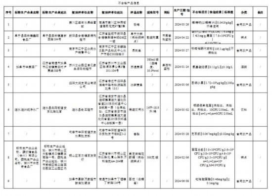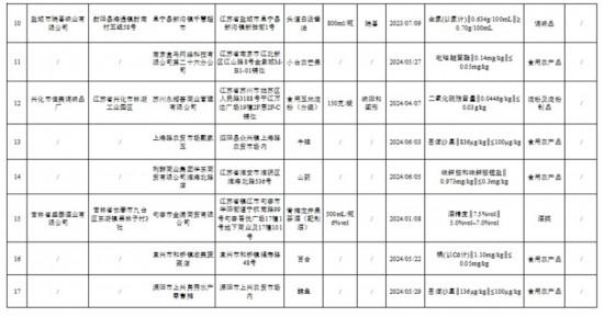 近期,江蘇省市場監(jiān)督管理局組織食品安全抽檢,抽取淀粉及淀粉制品、炒貨食品及堅(jiān)果制品、糕點(diǎn)、可可及焙烤咖啡產(chǎn)品、速凍食品、飲料、食用農(nóng)產(chǎn)品、水產(chǎn)制品、糧食加工品、餐飲食品、乳制品、肉制品、食用油、油脂及其制品、調(diào)味品和酒類等15大類食品707批次樣品,檢出其中淀粉及淀粉制品、調(diào)味品、糕點(diǎn)、酒類、食用農(nóng)產(chǎn)品和飲料等6大類食品17批次樣品不合格。