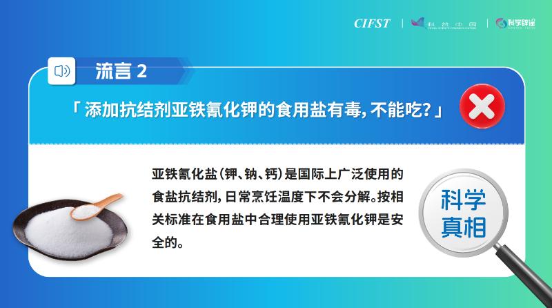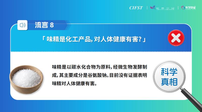 1月8日,中國食品科學技術學會與科普中國共同發(fā)布“2024年食品安全與健康流言榜”,涉及食用鹽、牛奶、果蔬、咖啡、味精、預制菜等日常食品。