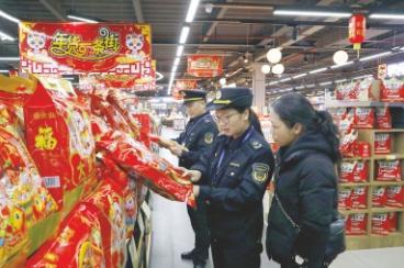 執(zhí)法人員檢查超市銷售的食品。何正君攝
