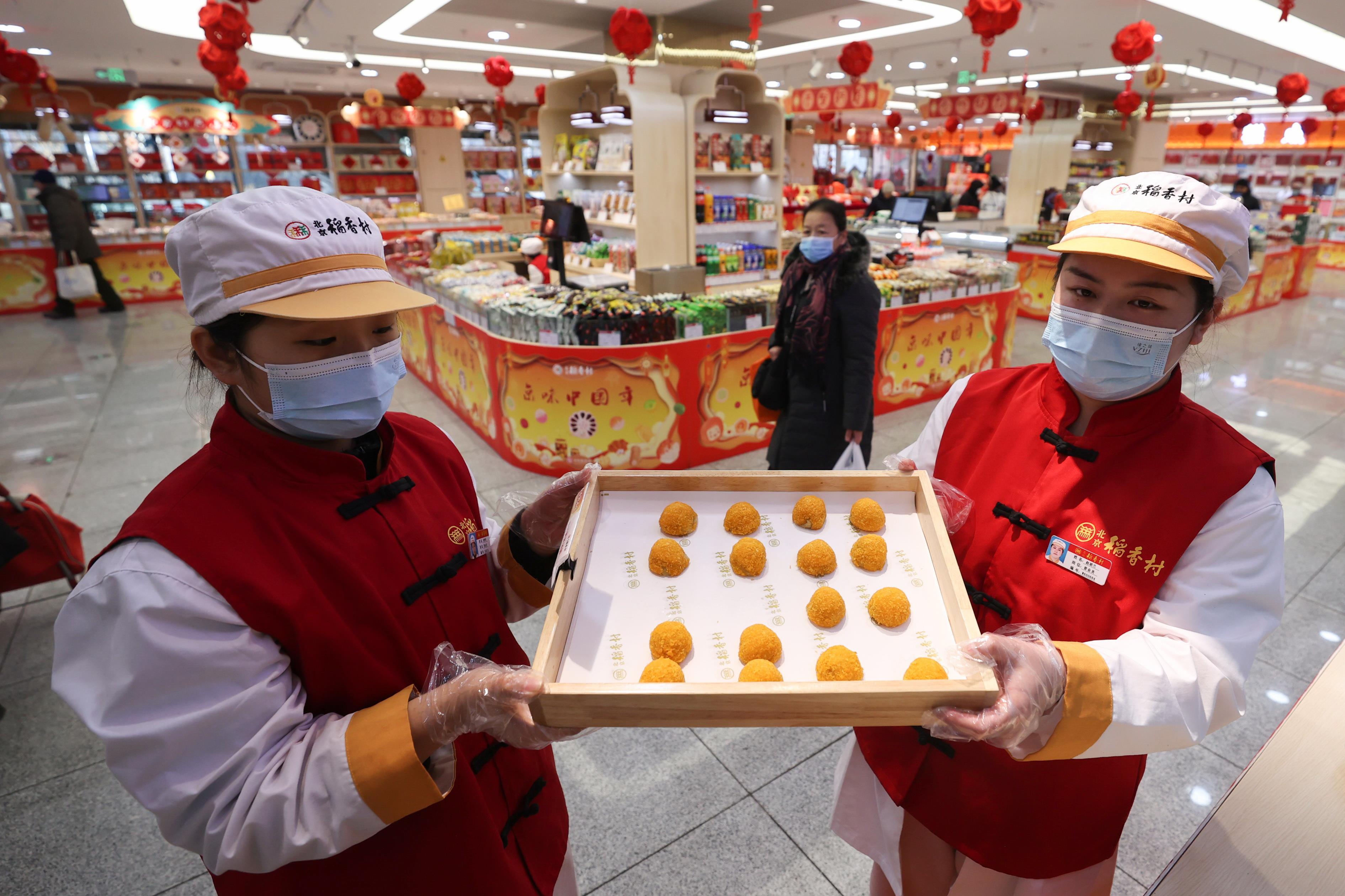 湯圓又有新吃法。近日,北京一家中華老字號糕點(diǎn)店門口,消費(fèi)者在其元宵湯圓柜臺前排起了長隊(duì)。記者了解到,該店在原有口味的基礎(chǔ)上,又特別推出了現(xiàn)烤黃米湯圓,其獨(dú)特的風(fēng)味吸引眾多顧客前來嘗鮮。(董芳忠)
