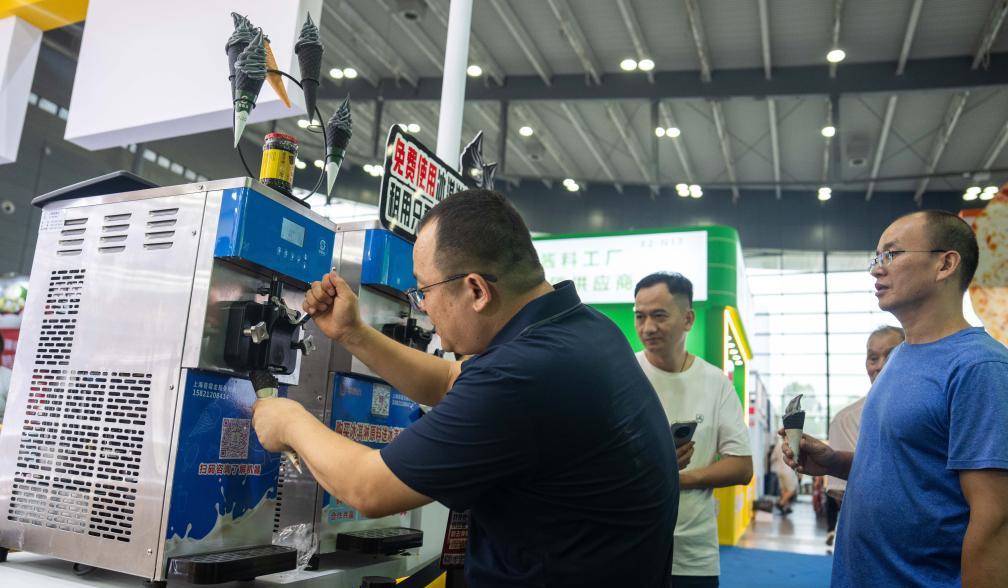 9月19日,在長沙國際會展中心,觀眾在品嘗冰淇淋。新華社記者 陳思汗 攝