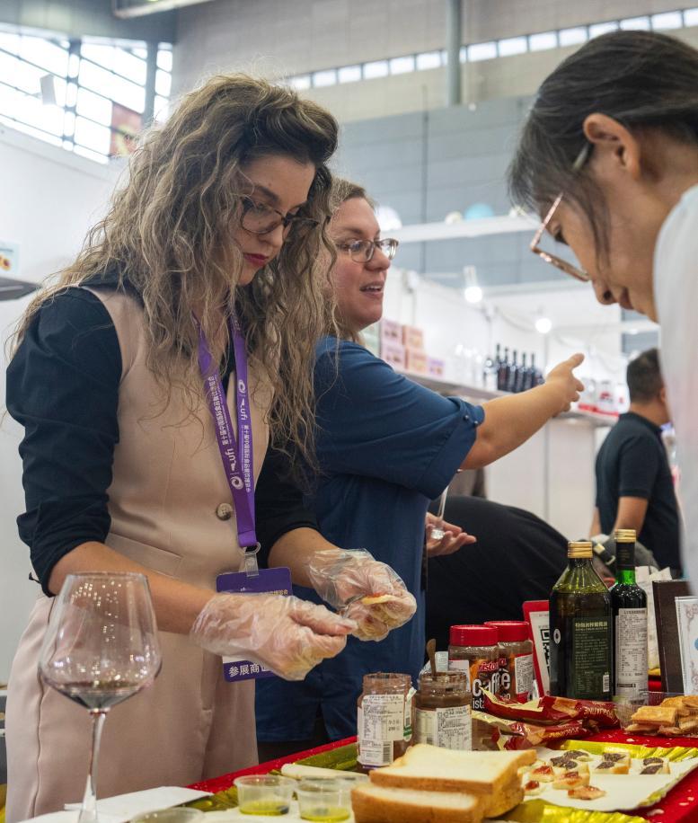 9月19日,在長沙國際會展中心,參展商(左一)在現(xiàn)場制作特色食品。新華社記者 陳思汗 攝