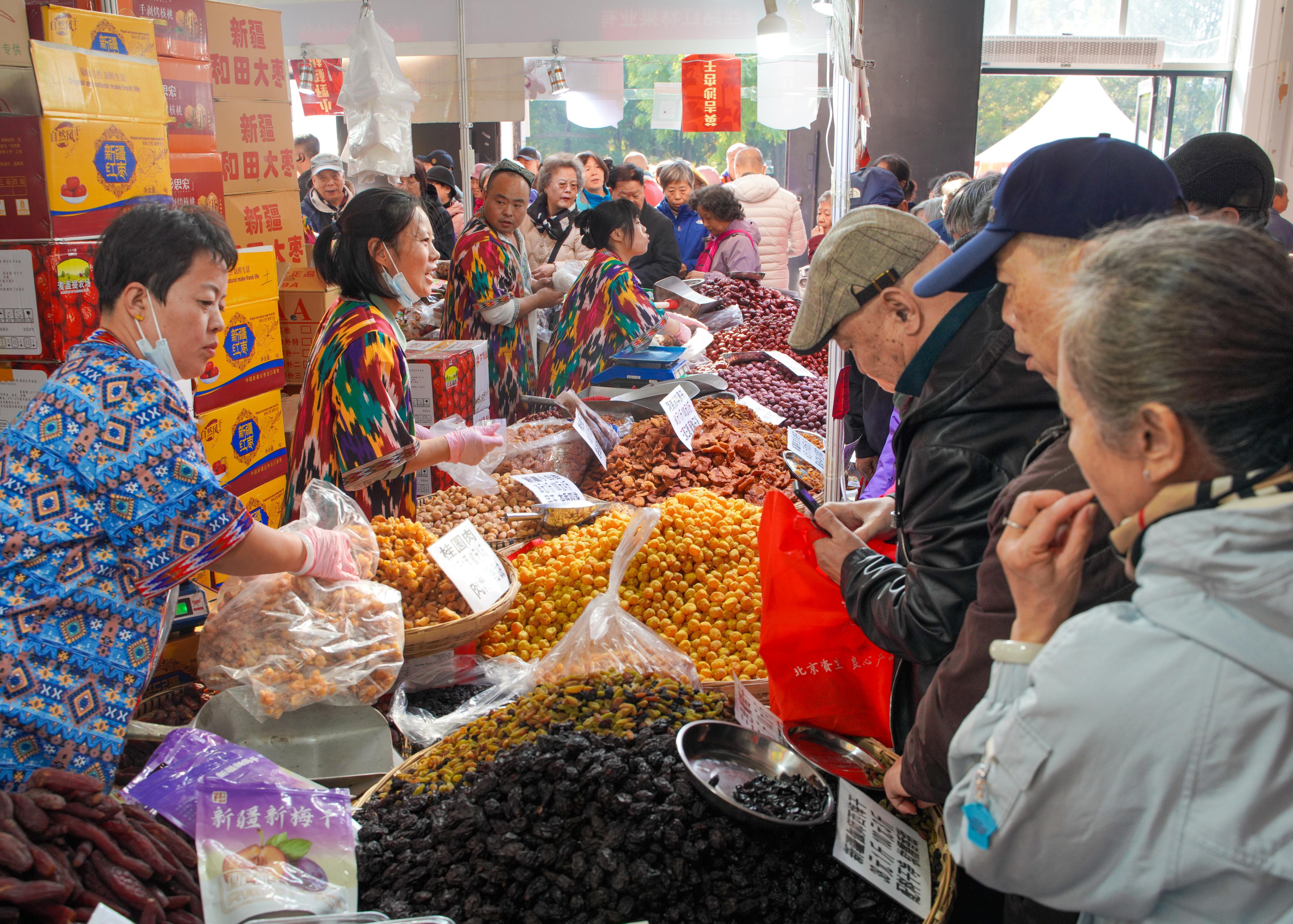 消費(fèi)者選購(gòu)特色食品。