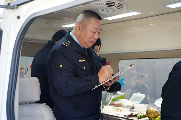 一旁的食品安全快速檢測(cè)車也備受關(guān)注,不少居民提著剛買(mǎi)的蔬菜前來(lái)檢測(cè),現(xiàn)場(chǎng)氣氛熱烈。