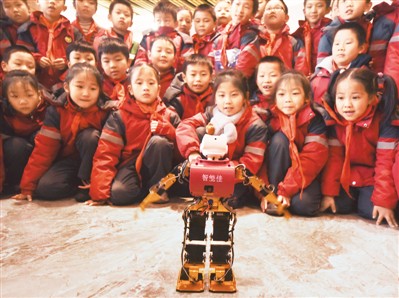 2020年12月18日,江西省撫州市資溪縣第三小學(xué)學(xué)生在觀看機器人表演?! 侵举F攝(人民視覺) |