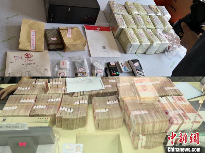 警方查獲部分涉案現(xiàn)金及作案工具?!」淘泄簿止﹫D