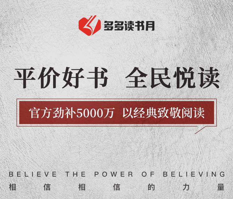 列夫·托爾斯泰曾說,理想的書籍是智慧的鑰匙。4月15日,拼多多“多多讀書月”宣布啟動(dòng)5000萬元讀書基金,聯(lián)合數(shù)十家出版社、圖書公司對(duì)中外經(jīng)典名著、暢銷圖書等進(jìn)行專項(xiàng)補(bǔ)貼。即日起,《史記》《萬歷十五年》《鄉(xiāng)土中國》《社會(huì)契約論》《中國哲學(xué)簡史》《飛鳥集》等上千款正版好書正式登陸百億補(bǔ)貼頻道,專項(xiàng)補(bǔ)貼書目中,優(yōu)質(zhì)圖書價(jià)格最低可至每本2.5元。