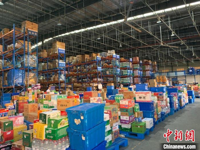 圖為等待配送的生活用品等快消品?!±铐嵑?攝