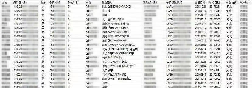 賣(mài)家向記者展示了之前交易的聊天記錄和車(chē)險(xiǎn)信息數(shù)據(jù)樣本,并保證“信息都是真實(shí)的”。在他展示的數(shù)據(jù)樣本中,包含車(chē)主姓名、身份證號(hào)、手機(jī)號(hào)、車(chē)牌、車(chē)型、發(fā)動(dòng)機(jī)號(hào)、車(chē)架號(hào)、車(chē)檢日期等詳細(xì)信息。