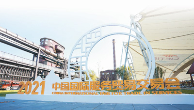 八月三十一日拍攝的二〇二一年中國國際服務貿(mào)易交易會首鋼園展區(qū)。 |