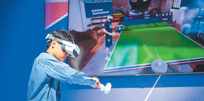 今年服貿會首次設置數(shù)字服務專區(qū),展示無人駕駛、智慧交通、建筑數(shù)字化、新視聽等服務領域最新前沿、最新成果和技術應用。圖為9月1日,國家會議中心展館內,與會人員在體驗VR設備。 |
