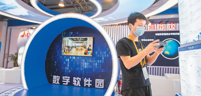 在國家會議中心綜合展區(qū),海南綜合形象館主要展示海南自貿港政策、旅游宣傳、重點領域和重點園區(qū)投資機遇等內容。圖為9月1日,工作人員在海南展館內調試設備。 |