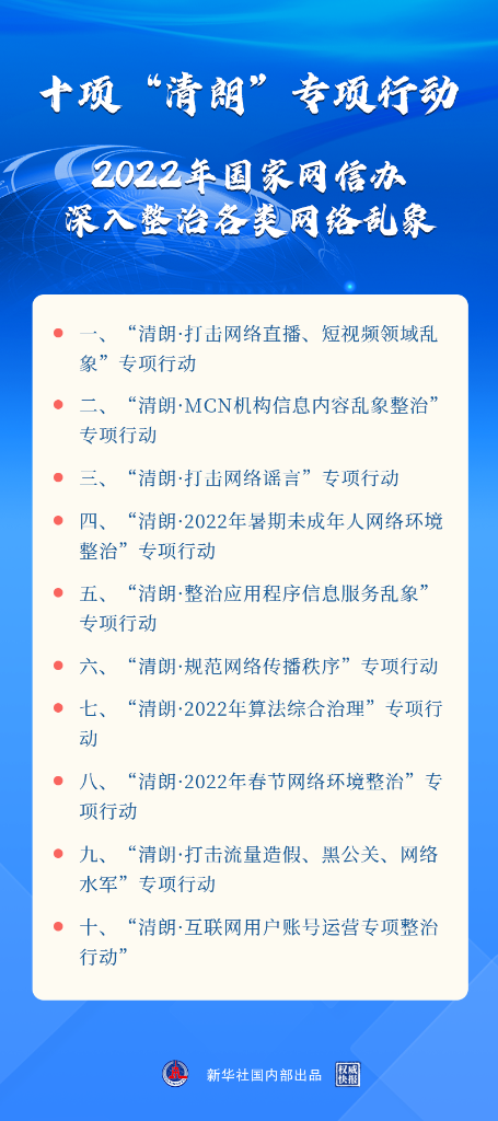 新華社北京3月17日電(記者王思北)記者17日從國新辦舉行的新聞發(fā)布會獲悉,2022年“清朗”系列專項行動將重點開展打擊網絡謠言,打擊網絡直播、短視頻領域亂象,算法綜合治理,暑期未成年人網絡環(huán)境整治等十方面任務。