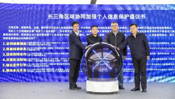 中央網(wǎng)信辦有關(guān)部門(mén)負(fù)責(zé)同志,上海、江蘇、浙江、安徽“三省一市”網(wǎng)信辦負(fù)責(zé)同志出席論壇開(kāi)幕式。開(kāi)幕式上發(fā)布了《長(zhǎng)三角區(qū)域協(xié)同加強(qiáng)個(gè)人信息保護(hù)倡議書(shū)》,提出堅(jiān)持統(tǒng)籌理念、完善標(biāo)準(zhǔn)體系、促進(jìn)協(xié)同合作、開(kāi)展執(zhí)法聯(lián)動(dòng)、強(qiáng)化宣傳引導(dǎo)、推動(dòng)多元共治等六項(xiàng)倡議。華東政法大學(xué)、上海社科院聯(lián)合評(píng)估項(xiàng)目組同時(shí)發(fā)布了“亮劍浦江”專(zhuān)項(xiàng)執(zhí)法行動(dòng)績(jī)效評(píng)估報(bào)告。報(bào)告總結(jié)了今年6月以來(lái)上海市網(wǎng)信辦、上海市市場(chǎng)監(jiān)管局會(huì)同相關(guān)行業(yè)主管部門(mén)開(kāi)展消費(fèi)領(lǐng)域個(gè)人信息權(quán)益保護(hù)專(zhuān)項(xiàng)行動(dòng)的成果成效,并就協(xié)同構(gòu)建個(gè)人信息保護(hù)長(zhǎng)效治理機(jī)制提出建議。上海市消保委等參與“亮劍浦江”專(zhuān)項(xiàng)執(zhí)法行動(dòng)的11家優(yōu)秀單位受到表彰。