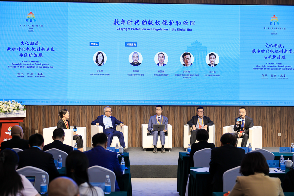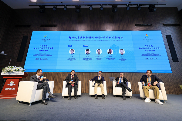 在圓桌對話環(huán)節(jié),與會嘉賓就數(shù)字技術(shù)在版權(quán)領域的應用創(chuàng)新及保護等問題進行探討。大家認為,數(shù)字化浪潮下,人工智能和區(qū)塊鏈技術(shù)為傳統(tǒng)版權(quán)保護和版權(quán)作品的創(chuàng)作帶來機遇,在促進版權(quán)創(chuàng)作、運營與保護的同時,數(shù)字技術(shù)的發(fā)展同樣對版權(quán)保護與治理提出了挑戰(zhàn)。與會嘉賓為數(shù)字時代版權(quán)創(chuàng)新發(fā)展與保護治理提供了新思路與新策略。