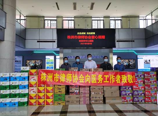株洲市律師協(xié)會撥付1萬元購買八寶粥、方便面、牛奶等緊缺生活物資捐贈給株洲市中心醫(yī)院。