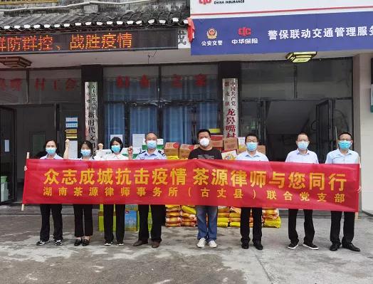 湖南茶源(古丈)律師事務所聯(lián)合黨支部黨員律師輪流值守在默戎苗寨景區(qū)卡點,為默戎鎮(zhèn)捐贈大米、糧油及其他生活物資。