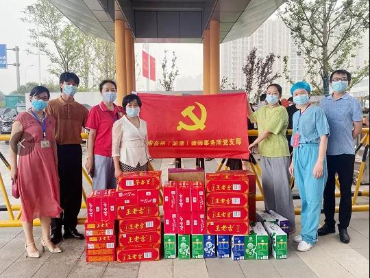 湖南紫霞湖律師事務所黨支部發(fā)動律師積極捐款,將募得款項購買風扇、飲用水等物資,送到基層一線防疫人員手中。