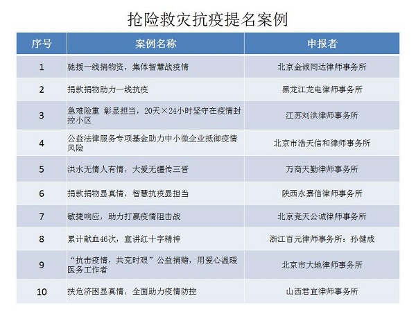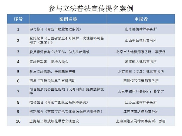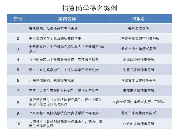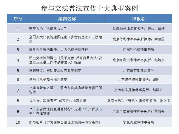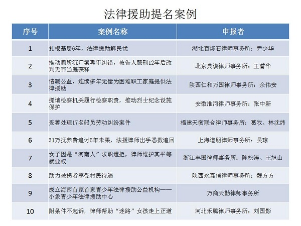 結(jié)合公眾投票和專家評審,十大律師公益類別最終產(chǎn)生了一百個(gè)典型案例,一百個(gè)提名案例。