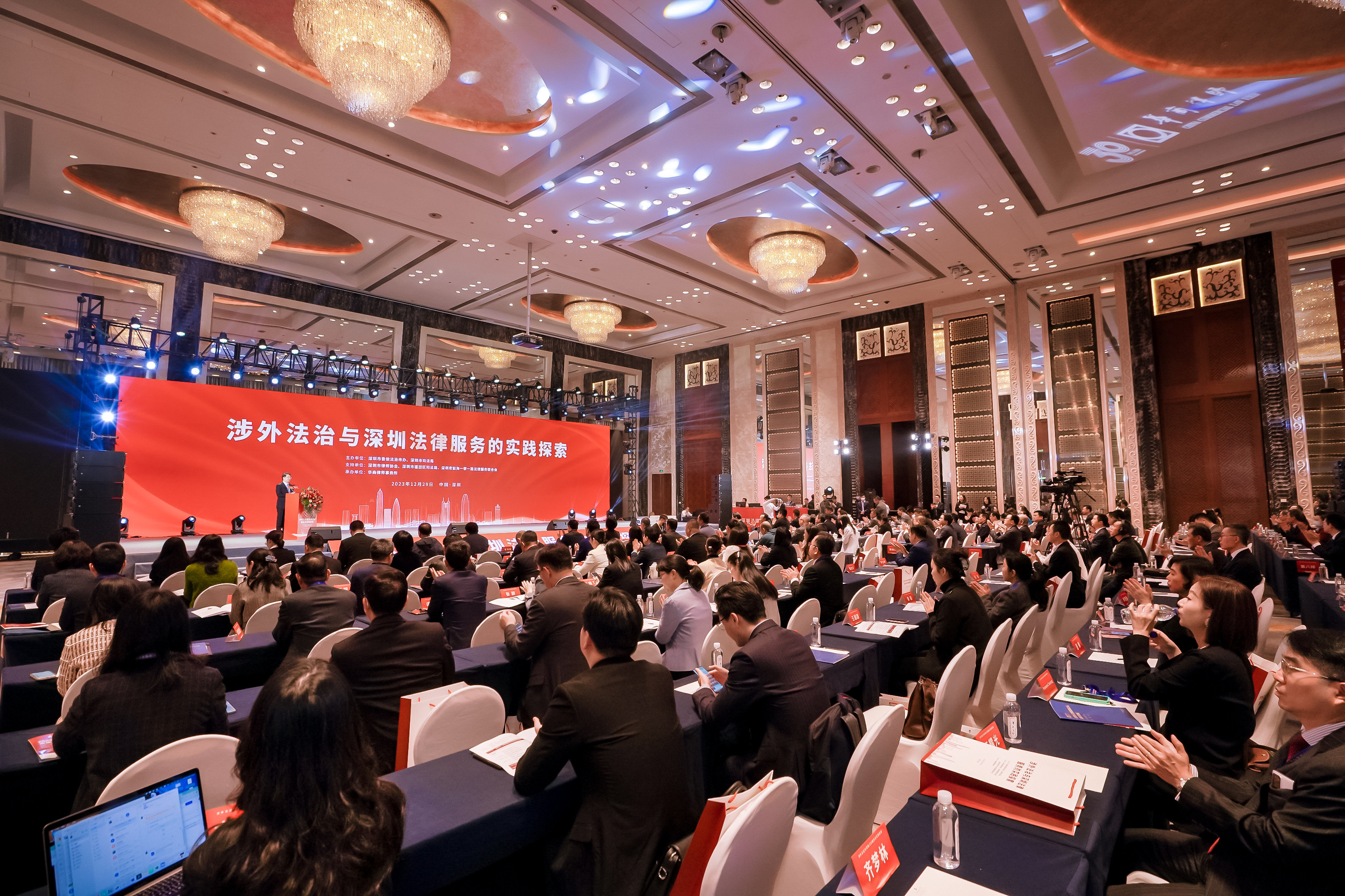 12月29日,廣東省深圳市委依法治市辦、深圳市司法局主辦,華商律師事務(wù)所承辦的涉外法治與深圳法律服務(wù)的實(shí)踐探索論壇舉行。來自深圳市、區(qū)相關(guān)黨政機(jī)關(guān)負(fù)責(zé)同志,全球知名律師事務(wù)所代表、全球華語律師、粵港澳大灣區(qū)律師、深圳律師代表、法律界第三方機(jī)構(gòu)、專家學(xué)者和企業(yè)界代表等300余人參加活動(dòng)。