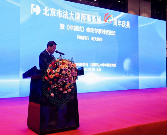 12月8日,北京市法大律師事務(wù)所成立四十周年慶典暨仲裁法修改專家對話論壇舉行。中國政法大學(xué)法學(xué)院與北京市法大律師事務(wù)所“卓越法治人才聯(lián)合培養(yǎng)基地”揭牌?;顒訉Ψù舐伤陌l(fā)展歷程進行了總結(jié)和貢獻表彰,對仲裁法修改涉及的熱點和難點進行交流探討。