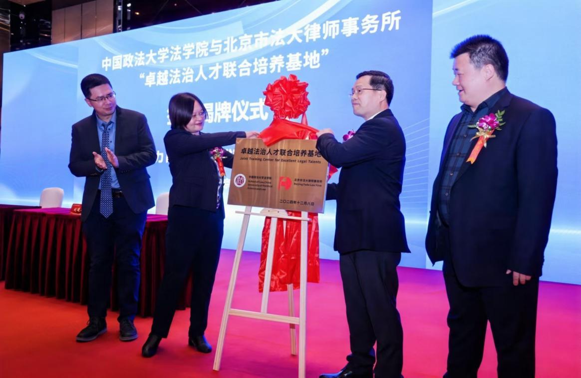 隨后舉行了中國政法大學(xué)法學(xué)院與北京市法大律師事務(wù)所“卓越法治人才聯(lián)合培養(yǎng)基地”簽約揭牌儀式。
