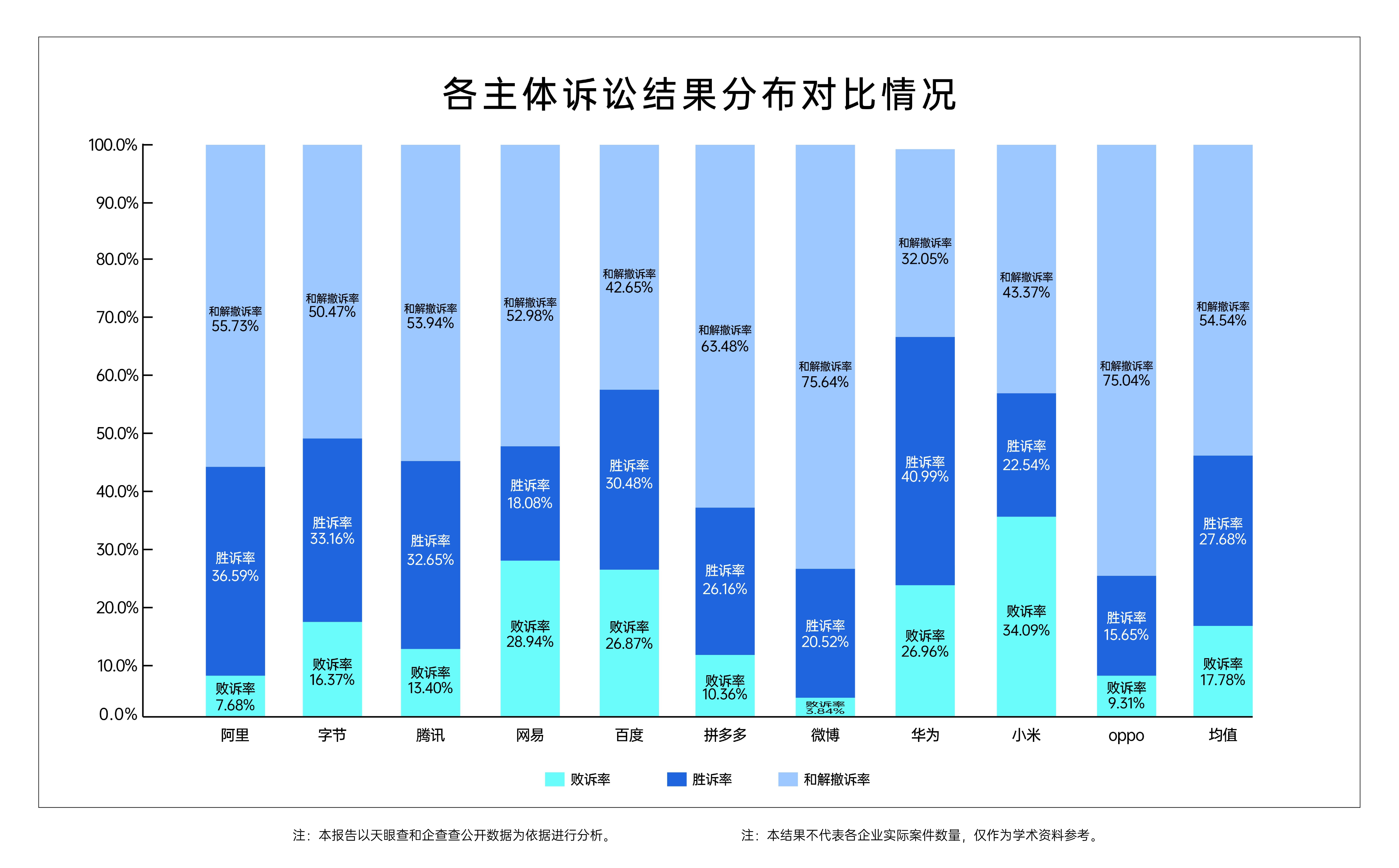 (根據(jù)企查查專業(yè)版數(shù)據(jù)統(tǒng)計(jì),各主體訴訟結(jié)果分布對比情況)