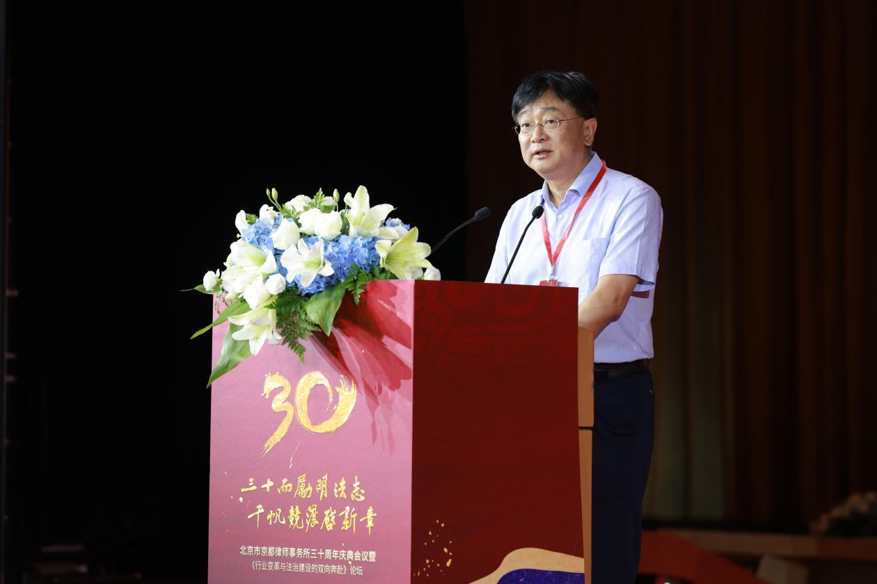 8月2日,京都律師事務所三十周年慶典會議暨“行業(yè)變革與法治建設的雙向奔赴”論壇在北京舉行。論壇旨在探討律師行業(yè)新變化,律師事業(yè)新方向,解構律師職業(yè)的新內涵,推動個體價值與未來法治的同頻共振。論壇由清華大學法學院聯(lián)合碩士生導師劉桂明主持。