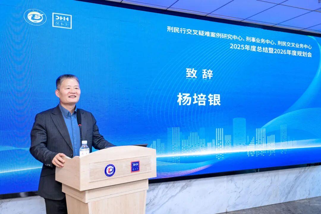 山東德衡律師事務所高級權益合伙人、執(zhí)行總裁、刑民行交叉疑難案例研究中心顧問楊培銀主任在開幕致辭時對山東大區(qū)業(yè)務中心尤其是三大中心的活動表示充分肯定,對中心在2025年取得的案件成果、團隊建設及社會影響力提升等方面給予高度評價,倡導關注跨領域協(xié)同研究在應對復雜案件中的實踐價值。他希望三大中心2026年在復雜案件應對與創(chuàng)新法律服務領域持續(xù)引領行業(yè)方向。