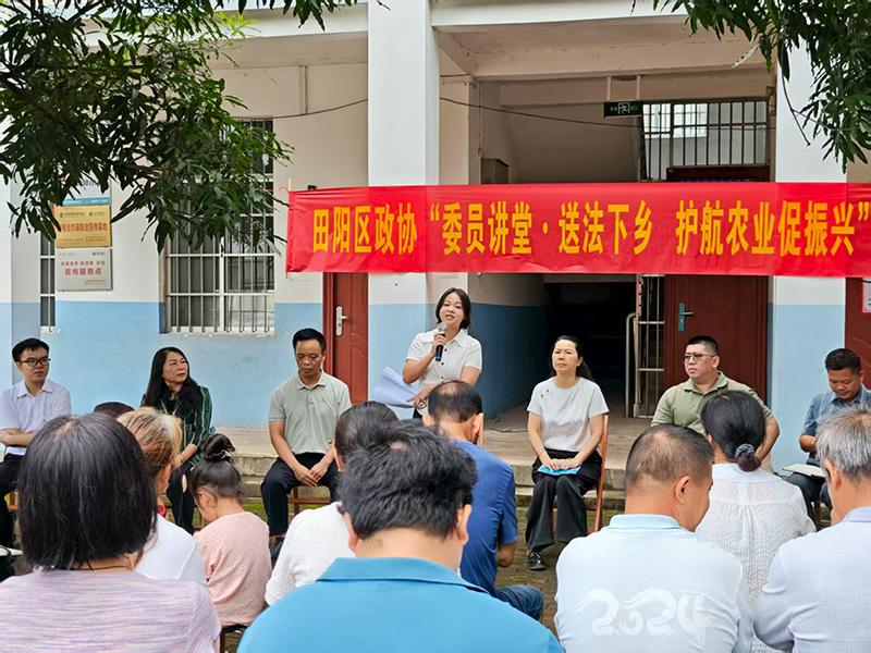 圖為百色市政協(xié)委員班雁霞到百色市田陽區(qū)坡洪鎮(zhèn)郎含村開展“委員講堂·送法下鄉(xiāng) 護航壯鄉(xiāng)促振興”專項活動。