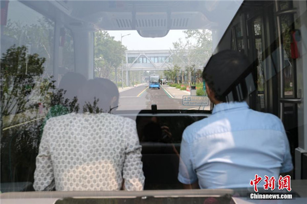 6月26日,無人駕駛微循環(huán)電動巴士在雄安市民服務中心搭載乘客出行。雄安市民服務中心是雄安新區(qū)成立后啟動的第一個城市建筑項目,是新區(qū)功能定位和發(fā)展理念的率先呈現(xiàn),主要用于服務市民,行政及先期入駐新區(qū)的企業(yè)提供臨時辦公、生活場所,同時滿足新區(qū)規(guī)劃建設成果展示、政務服務、會議接待和未來低碳智慧城市生活體驗等功能需要。 中新社記者 張遠 攝
