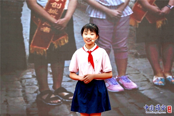 北京市海淀區(qū)中關村第三小學雄安校區(qū)學生楊寧欣的宣講題目是《我與雄安共成長》。中國雄安官網(wǎng)記者馬夢迪 攝