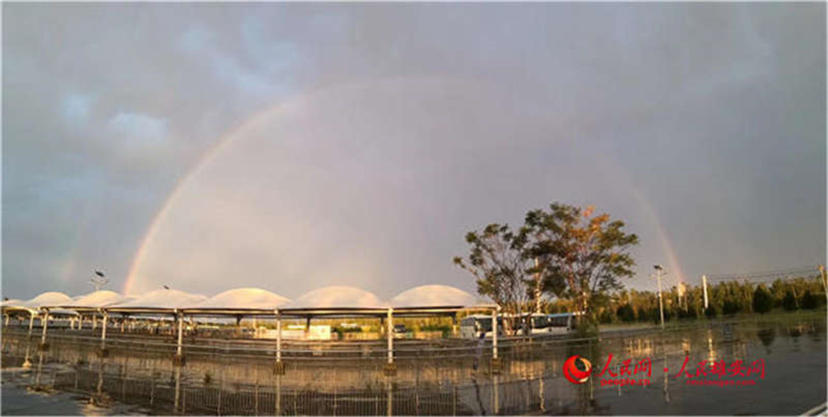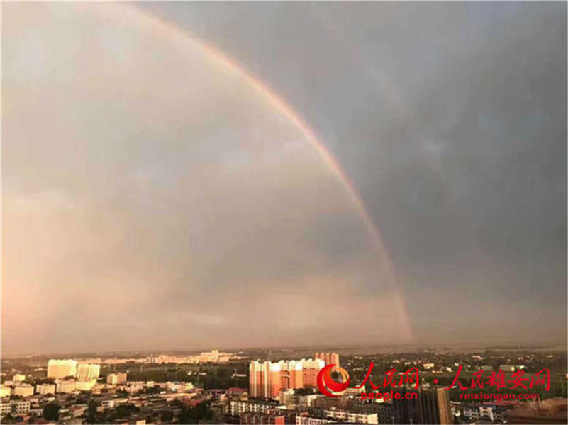 人民網雄安8月15日電 今日傍晚,雄安新區(qū)突降陣雨。雨后,新區(qū)的天空驚現(xiàn)雙彩虹和大片晚霞,市民們紛紛用手機記錄下了這一美景,一起來看看吧。