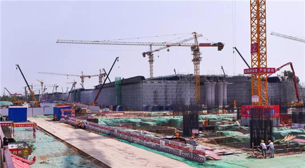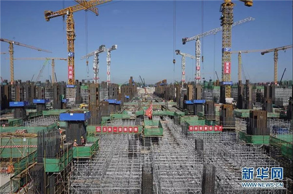 京雄城際鐵路雄安站建設工地掠影。中鐵建工集團供圖
