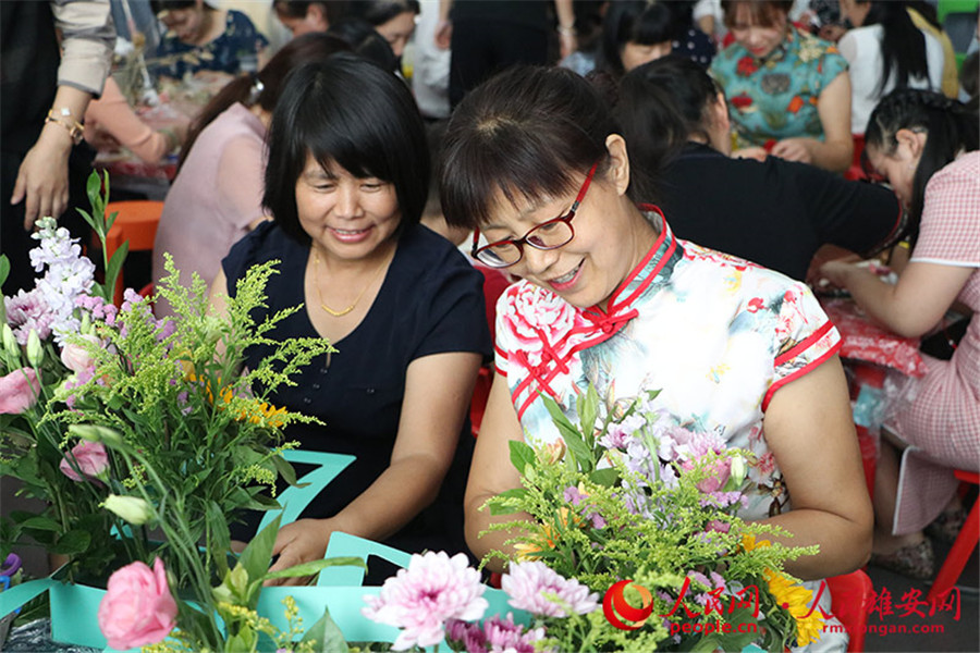 教師節(jié)當(dāng)天,北京市六一幼兒院雄安院區(qū)舉辦“花兒獻(xiàn)祖國,傳承經(jīng)典文化”主題活動,老師和孩子們一起用插花、制作團(tuán)扇等形式慶祝新中國成立70周年和第35個教師節(jié)。