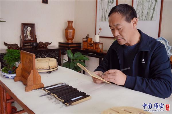 雄安非遺項目《京簧竹刻》傳承人王樂修。王樂修供圖