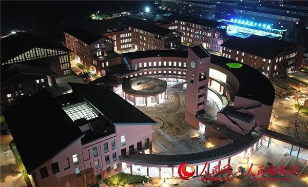 航拍雄縣三中夜景。中建八局供圖