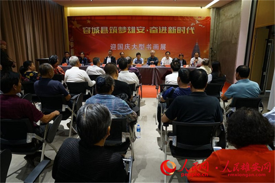 人民網(wǎng)雄安9月25日電 “筑夢(mèng)雄安、奮進(jìn)新時(shí)代”大型書(shū)畫(huà)展今天在雄安新區(qū)容城縣開(kāi)幕,旨在迎接新中國(guó)成立70周年。