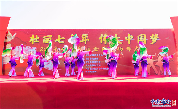 航拍“壯麗七十年 偉大中國夢”2019年雄安新區(qū)全民廣場舞大賽決賽現(xiàn)場。中國雄安官網(wǎng)記者馬夢迪 攝