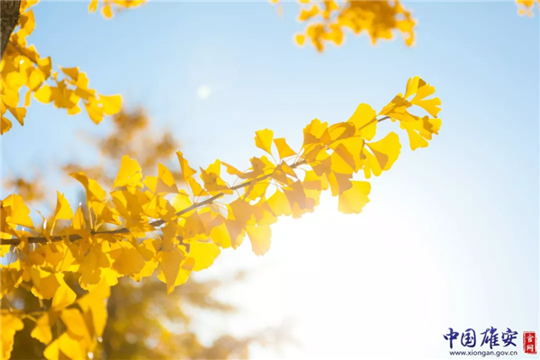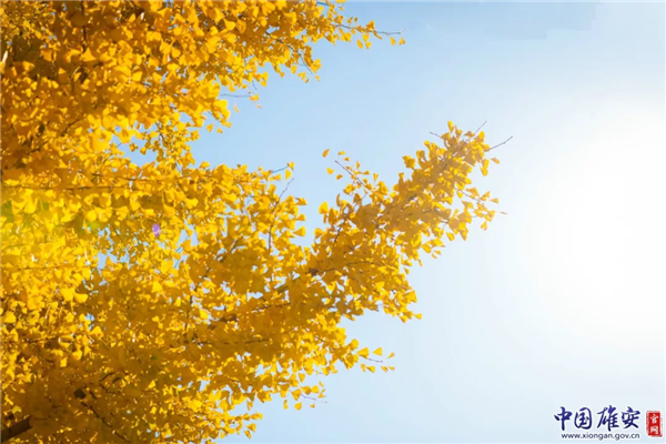 晴朗秋日里,黃燦燦的銀杏葉引人注目。中國(guó)雄安官網(wǎng)馬夢(mèng)迪 攝