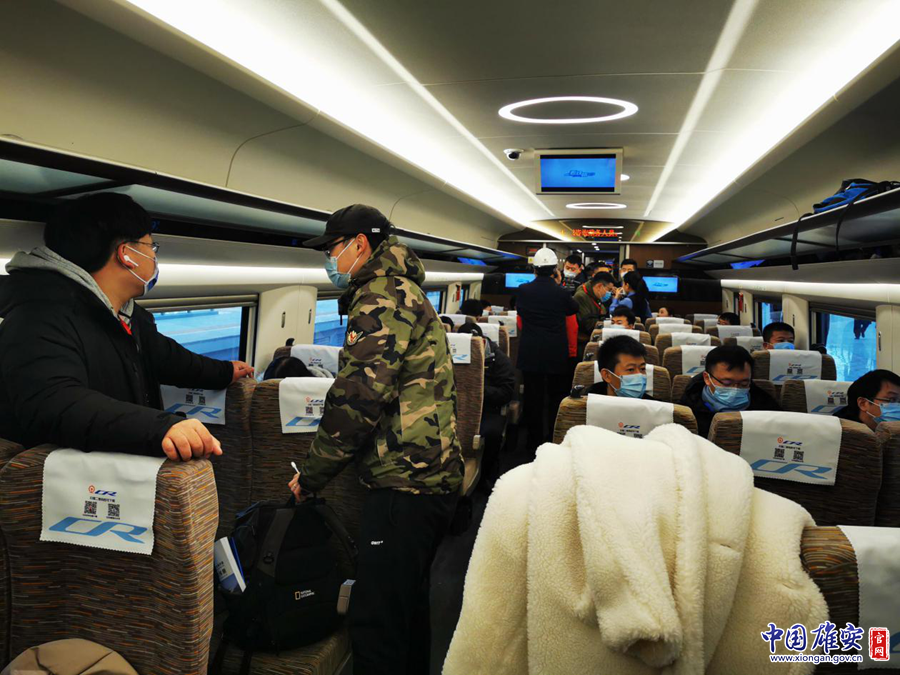 12月27日,在雄安站,乘坐C2702次列車的旅客在列車前拍照留念。劉東堯 攝