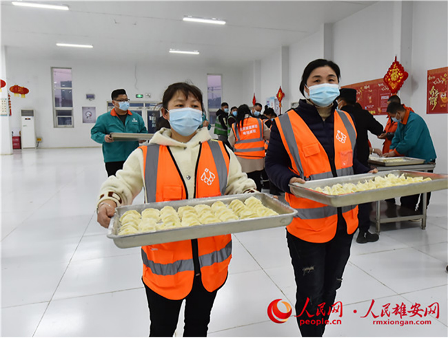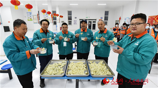 雄安新區(qū)容東片區(qū)B1組團安置房項目留雄過年建設(shè)者吃餃子過大年。