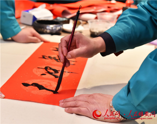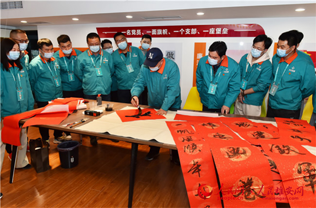 雄安新區(qū)容東片區(qū)B1組團安置房項目留在雄安過年建設(shè)者寫春聯(lián)。